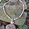 Deze ketting is volledig gemaakt van Polychroom Jaspis, zowel de hanger als de kralen. Dit versterkt natuurlijk enorm de aardende werking van deze Jaspis. De hanger heeft een prachtige tekening aan beide zijde.